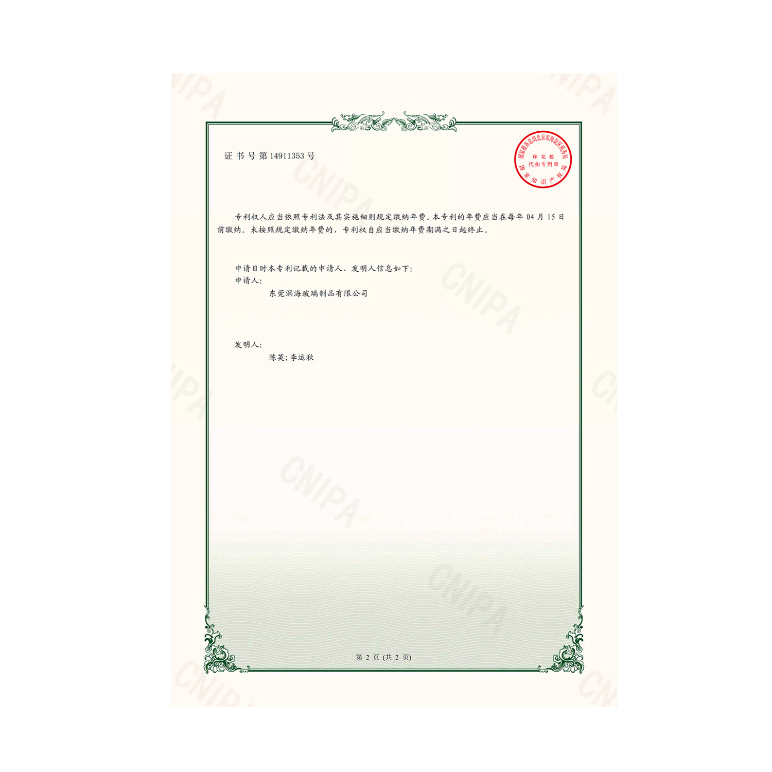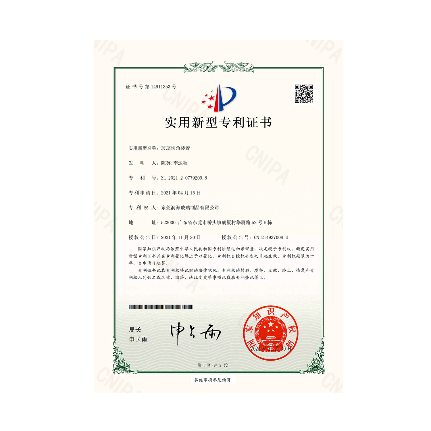 • 專利證書